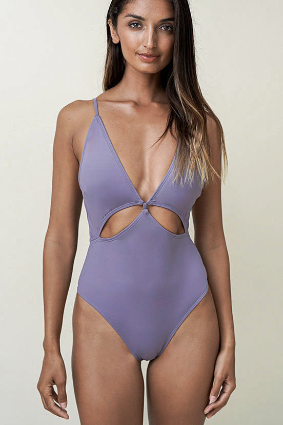 Get ready for poolside piña coladas in our new cut-out maillot. This flattering tropical one-piece features a plunge neckline, skinny straps and a padded bra for all-day comfort. A clasp closure at the back makes for an easy fastening.
