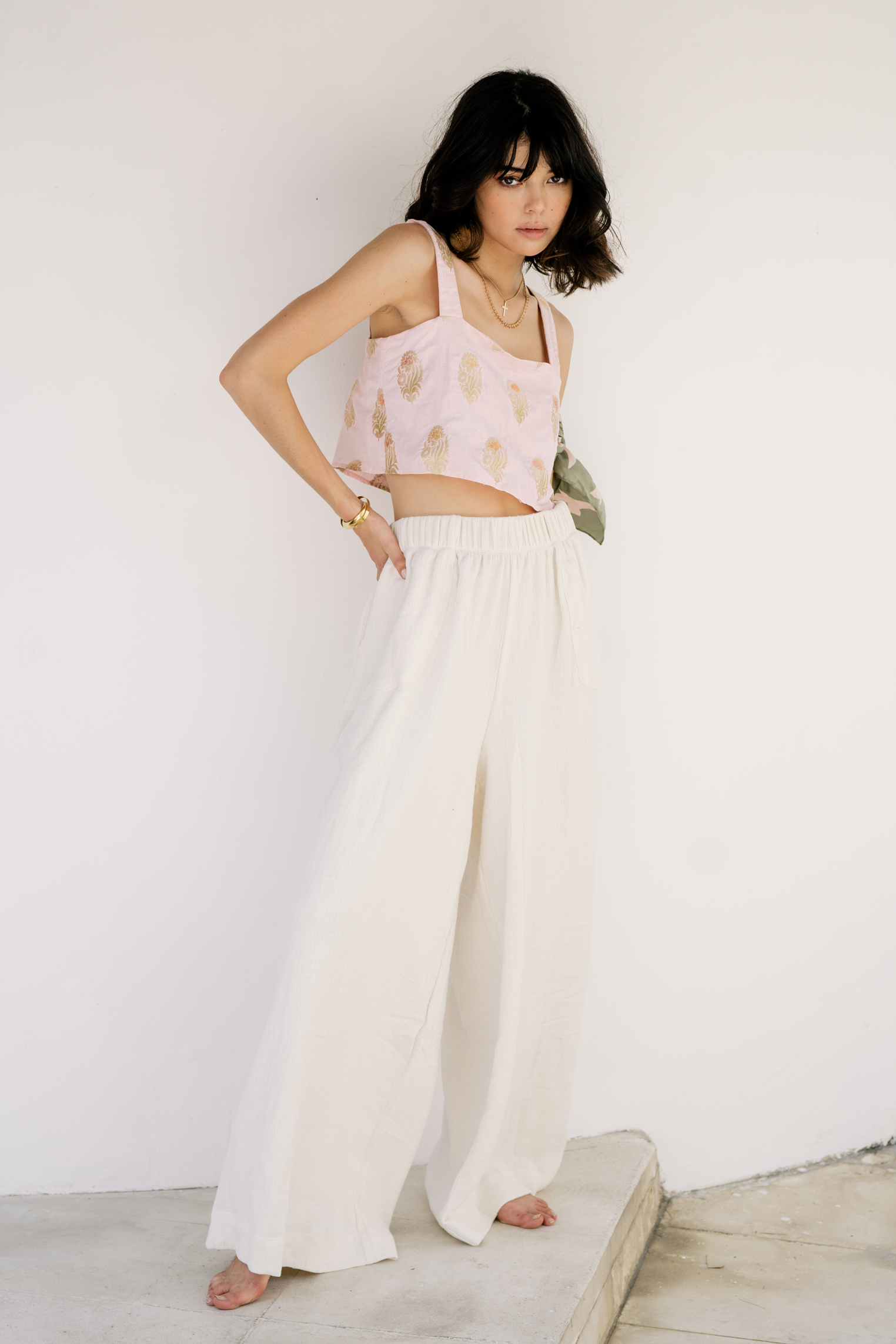 The coziest palazzo style beach pants you’ll own this season featuring hollow side pockets and elasticated waistband in an oversized slouchy silhouette. Wear this effortless seaside piece for a laid back, throw-on-and-go approach to beach dressing.